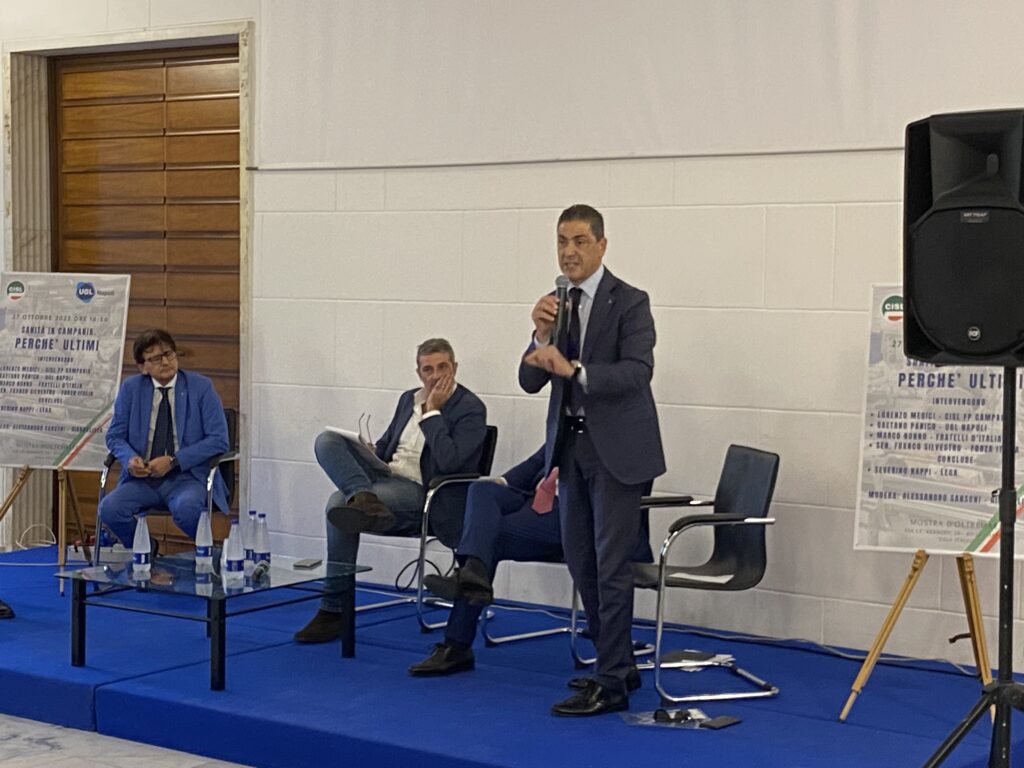 All’ evento organizzato dall’ UGL e rappresentata da Gaetano Panico hanno partecipato Marco Nonno, dirigente di FdI, Severino Nappi, consigliere regionale della Lega, Lorenzo Medici, CISL FP Campania, inoltre il dibattito è stato moderato egregiamente dal giornalista Alessandro Sansoni.