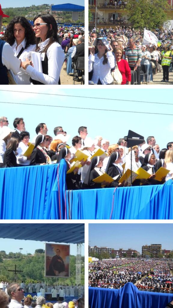 Era il 7 Maggio 2011. Un terreno ubicato all’interno di via Pallucci, fu messo gratuitamente a disposizione dei Vocazionisti per accogliere un evento di cui parlarono i giornali e le televisioni di tutto il mondo. Fu quello il giorno della beatificazione di Don Giustino Russolillo. A beatificare l’umile prete di Pianura, fondatore della Congregazione dei Vocazionisti, fu l’allora Pontefice Benedetto XVI. E anche in quella splendida e calda giornata di Maggio, noi c’eravamo. C’erano le croniste de La Voce di Pianura News, Susy Sorrentino e Amalia Scherillo (vedi foto) , il nostro cronista Antonio Colantuono. In mezzo a migliaia e migliaia di persone, stavano lì a seguire quella grande festa spirituale che celebrava Don Giustino Russolillo. A coglierne i momenti più significativi ed importanti attraverso filmati e foto, interviste. Il tutto per poi portare tutto il materiale in redazione e preparare uno “speciale”, un’esclusiva sul personaggio più illustre del quartiere, oggi Santo e riversare tutto sulle pagine (cartacee) del giornale. E oggi, continuiamo ad essere presenti con lo stesso giornale, stavolta, on line, per parlare ancora ma non soltanto del quartiere ma anche della città, di altri quartieri, dell’attualità estesa a tutto il Paese ed oltre.