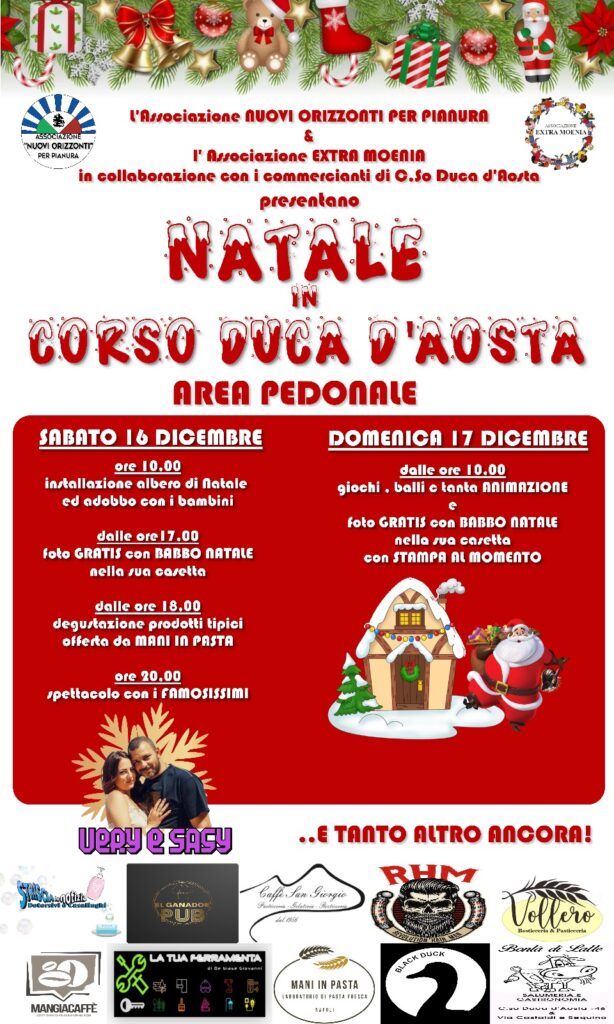 Grande partecipazione per l’evento “Natale in Corso Duca d’Aosta” promosso dal Consigliere della IX Municipalità , Giuseppe Gaetano e con la collaborazione delle associazioni “Nuovi Orizzonti per Pianura” ed “Extra Moenia” . Due giornate intense quelle di Sabato 16 Dicembre e Domenica 17 Dicembre 2023 ( vedi locandina) nel corso delle quali i bambini con relative famiglie hanno vissuto momenti di degustazione, spettacoli , animazione , foto con Babbo Natale con stampa in tempo reale, giochi balli, esibizioni di artisti e tanto altro. Insomma una manifestazione caratterizzata dal perfetto mix fatto di divertimento a tutto tondo, musica , arte , etc. svoltasi con la fattiva collaborazione dei commercianti del Corso Duca d’Aosta presso l’isola pedonale.