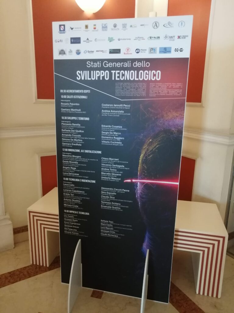 Si è svolto ieri 10 Giugno c.a. al Polo dello Shipping l’evento dal titolo ” Gli Stati Generali dello Sviluppo Tecnologico”. Il significativo convegno è stato ideato e promosso da Rosario Palumbo , consigliere comunale di Napoli e Presidente dell’Associazione SOTER. Presenti , tra gli altri il Sindaco di Napoli, Gaetano Manfredi, l’assessore alle Infrastrutture del Comune di Napoli, Eduardo Cosenza, il Presidente dell’Autorità di Sistema Portuale del Mar Tirreno Centrale, Andrea Annunziata, il Presidente dell’Unione Industriali di Napoli, Costanzo Jannotti Pecci, l’ex parlamentare Roberto Fico. Tra le finalità del D è stata quella di proporre un’interazione efficace e concreta tra leaders del settore tecnologico, , investitori, visionari, enti pubblici e privati con l’obiettivo di creare network strategici e proposte innovative.