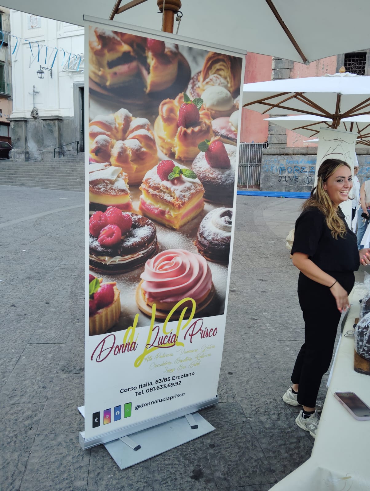 Nella piazza antistante alla Basilica dopo la Santa Messa del Giubileo dei Pasticcieri tenutasi nella Basilica di Pugliano; che sarà sede Giubilare per l’anno 2025. Pasticcieri di tutto il territorio campano e del sud Italia, grazie al patrocinio della FIPGC: Federazione Internazionale Pasticceria Gelateria e Cioccolateria hanno presentato, e fatto assaggiare ai partecipanti accorsi, le loro specialità preparate proprio in onore di questo Santo Anno Giubilare 2025.