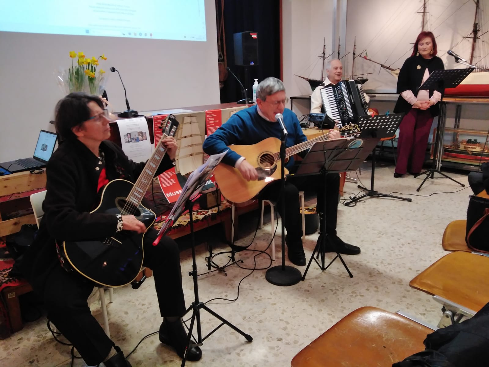Gruppo “Per la pace”, composto da Enzo Boccardi al mandolino; Nella D’ Angelo (esperta di teatro e conduttrice); Ugo Dente (musicista) alla fisarmonica; Tiziana Tuzi (chitarra e voce); Maria Antonietta Selvaggio (già Ricercatrice in Sociologia e Docente presso Università degli Studi di Salerno) – Vicepresidente fondazione Thetys – Museo del Mare di Napoli.