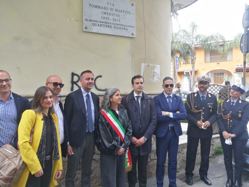 Significativo evento stamani nel quartiere Pianura con la presenza del Vicesindaco e Assessore all’Urbanistica del Comune di Napoli, Laura Lieto. Una strada del quartiere è stata intitolata al Dott. Tommaso Di Martino, stimato medico a Pianura, il quale si è caratterizzato, nel corso dell’esercizio della sua professione, come medico filantropo, sempre in aiuto dei cittadini socialmente più deboli, e sempre disponibile nei confronti di tutti. Insomma un medico che ha sempre inteso l’espletamento della sua attività medica come vera ed autentica missione. Non a caso la morte di Di Martino scomparso anni fa, suscito’ nella comunità pianurese intensa emozione e profondo dolore. Per amore della verità, è giusto evidenziare che l’intitolazione di una strada di Pianura al Dott. Tommaso Di Martino, è stata fortemente voluta all’attuale consigliere comunale di Napoli, Giorgio Longobardi, il il quale era visibilmente emozionato per il raggiungimento di un obiettivo desiderato con forza sin dall’avvio del suo insediamento nell’assemblea cittadina. Egli ha profuso una intensa attività istituzionale attraverso interventi in aula fino alla presentazione di un ordine del giorno finalizzato l’intitolazione di una strada al meritevole professionista di Pianura. Ordine del giorno poi accolto e votato all’unanimità in Consiglio e approvato con il placet dell’assessore Laura Lieto e dell’esecutivo. Erano presenti, oltre alla assessora Lieto e al Consigliere Longobardi, il Presidente della IX Municipalità, Andrea Saggiomo, il presidente cittadino di F.d.I. Marco Nonno, i figli del Dott. Tommaso Di Martino e tantissimi cittadini. Tra essi il sig. Giorgio Longobardi, zio dell’omonimo consigliere comunale, il quale ha raccontato che alle elementari era nella stessa classe del meritevole medico e ha affermato che lo stesso già si distingueva per la sua bravura e sensibilità.