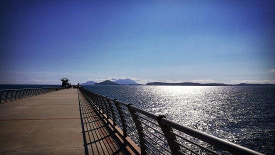 Per scoprire la storia del Pontile di Bagnoli, bisogna fare un passo indietro nel tempo a quando a Bagnoli vi era il grande stabilimento siderurgico noto come “Italsider”. Fondata nel 1905 arrivò a coprire una superficie di oltre 2 milioni di metri cubi ed aveva migliaia di dipendenti. Il pontile fu costruito nel 1962 per consentire alle navi mercantili il carico e lo scarico del materiale per lo stabilimento. Quando nel 1992 l’Italsider chiuse, il ponte visse uno stato di abbandono per decenni. Ma sucessivamente, nell’anno 2000, nacque un progetto di riqualificazione e riscostruzione e nel frattempo, nel 1998, uno scultore tale Giancarlo Neri, realizzò una scultura, un Totem, fatto da materiali che provenivano dall’acciaieria posto alla destra del pontile. Nell’anno 2000, l’architetto Dott. Lopez, concepì un progetto per ridare vita al pontile e renderlo accessibile ai cittadini ed ai turisti e fu realizzato nell’anno 2005. Dopo qualche anno fu inserito nei siti del Maggio dei Monumenti. Alla fine del pontile era stata costruita una sorta di isola, con una rosa dei venti posta al centro. Oggi PUTROPPO l’isoletta non è accessibile a causa di un dissesto del ponticello di collegamento….DA TROPPO TEMPO. Una curiosità: il pontile di bagnoli è sullo sfondo della foto di copertina dell’ album “Mondi Sommersi” dei Litfiba. Attualmente il pontile rappresenta un ‘ottima opzione per chi vuole godersi la vista del mare in un luogo tranquillo, fare jogging, respirare iodio e vivere attimi di romanticismo al tramonto.