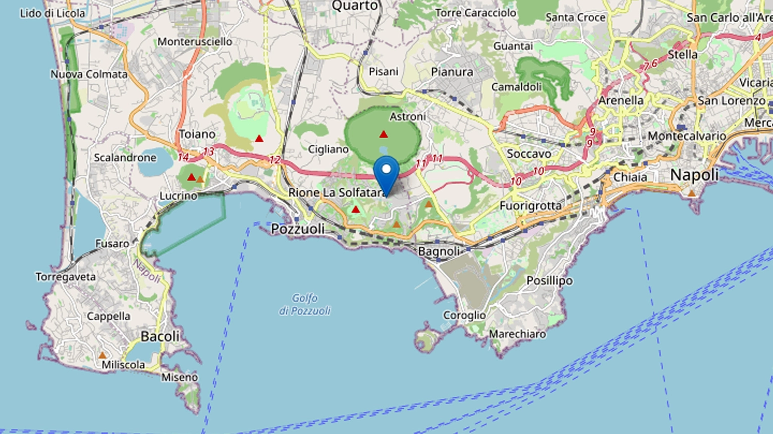 L’epicentro è stato localizzato nei pressi del vulcano Solfatara ad una profondità tra 1,1 e 2,7 km.